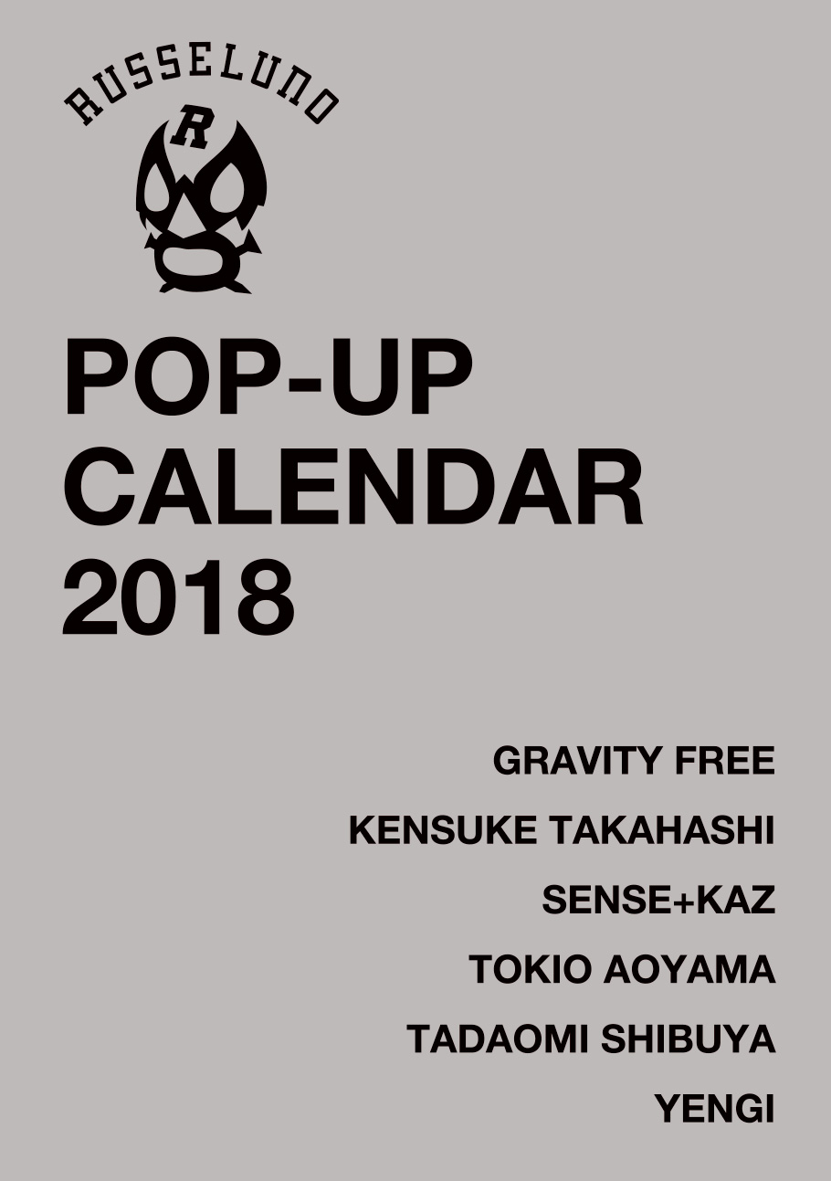 View this post on Instagram Russeluno 2018 CALENDAR 6組のアーティストとのコラボレーションにより完成したポップアップカレンダーは、個性溢れるアーティスト達のアートワークをカレンダーに落とし込み、広げると作品が飛び出してくるという、迫力あるギミックの効いた他にはないカレンダーの枠を超えたEXCLUSIVEな作品に仕上がっています。・ ・ ・ <FEATURED ARTISTS> MONTH 1-2 @gravityfreegram MONTH 3-4 @kensuketakahashi1977.art MONTH 5-6 @thebluelove_insta MONTH 7-8 @tokioaoyama MONTH 9-10 @tadaomishibuya MONTH 11-12 @yengiworks #Russeluno #russelunocidam #ラッセルノ Russeluno®さん(@russeluno_official)がシェアした投稿 - 2017年11月月15日午後10時20分PST